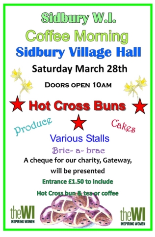 Entrance £1.50 to include Hot Cross Bun, Tea or Coffee