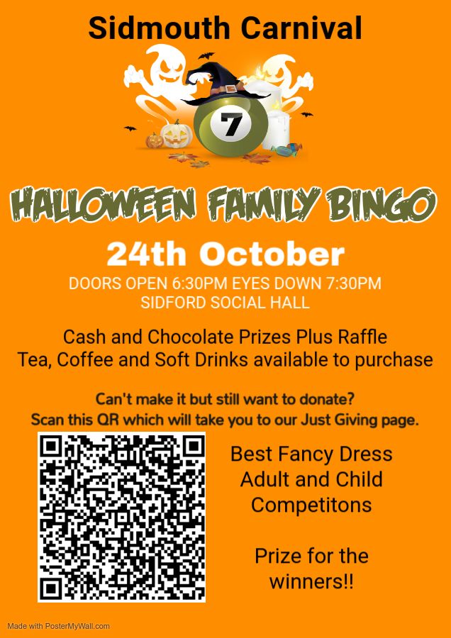 Sidford Social Hall – Doors open 6:30pm eyes down 7:30pm.