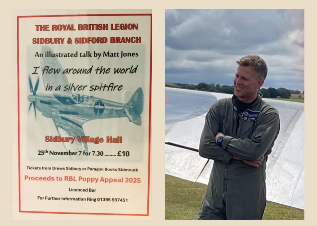 The British Legion are hosting a talk by Silver Spitfire pilot, Matt Jones. ‘I flew around the world in a silver spitfire.’
